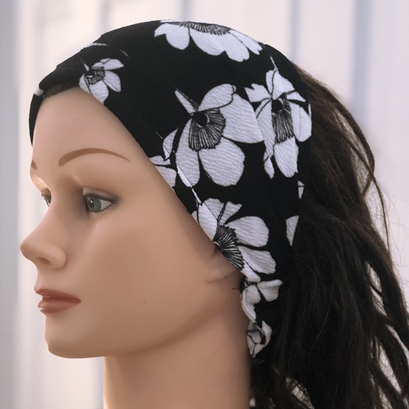 This headband is somewhat lighter than our woven models.This headband can be worn in its full width or folded in half. It is very comfortable and stays well put, without being too tight. It matches well with our garments and other accessories.