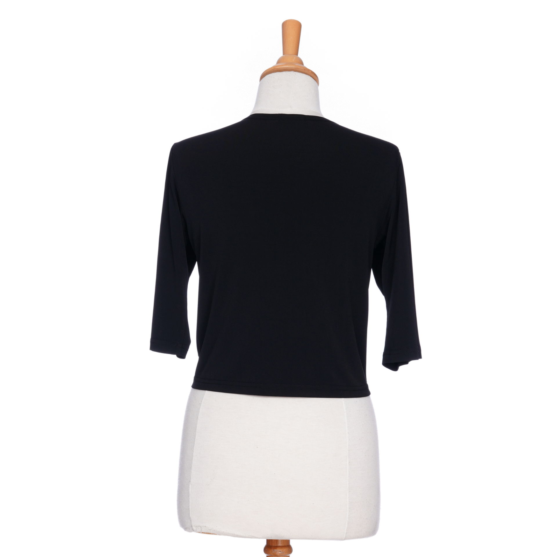 The Pétillant Bolero is a one-of-a-kind fashion piece! Tie its front knot to create a lovely rounded hem that gives this topper a feminine and romantic silhouette. Its 3/4 sleeves delicately reveal your wrists, perfect for sunny days when you want just a little coverage, but not too much.
