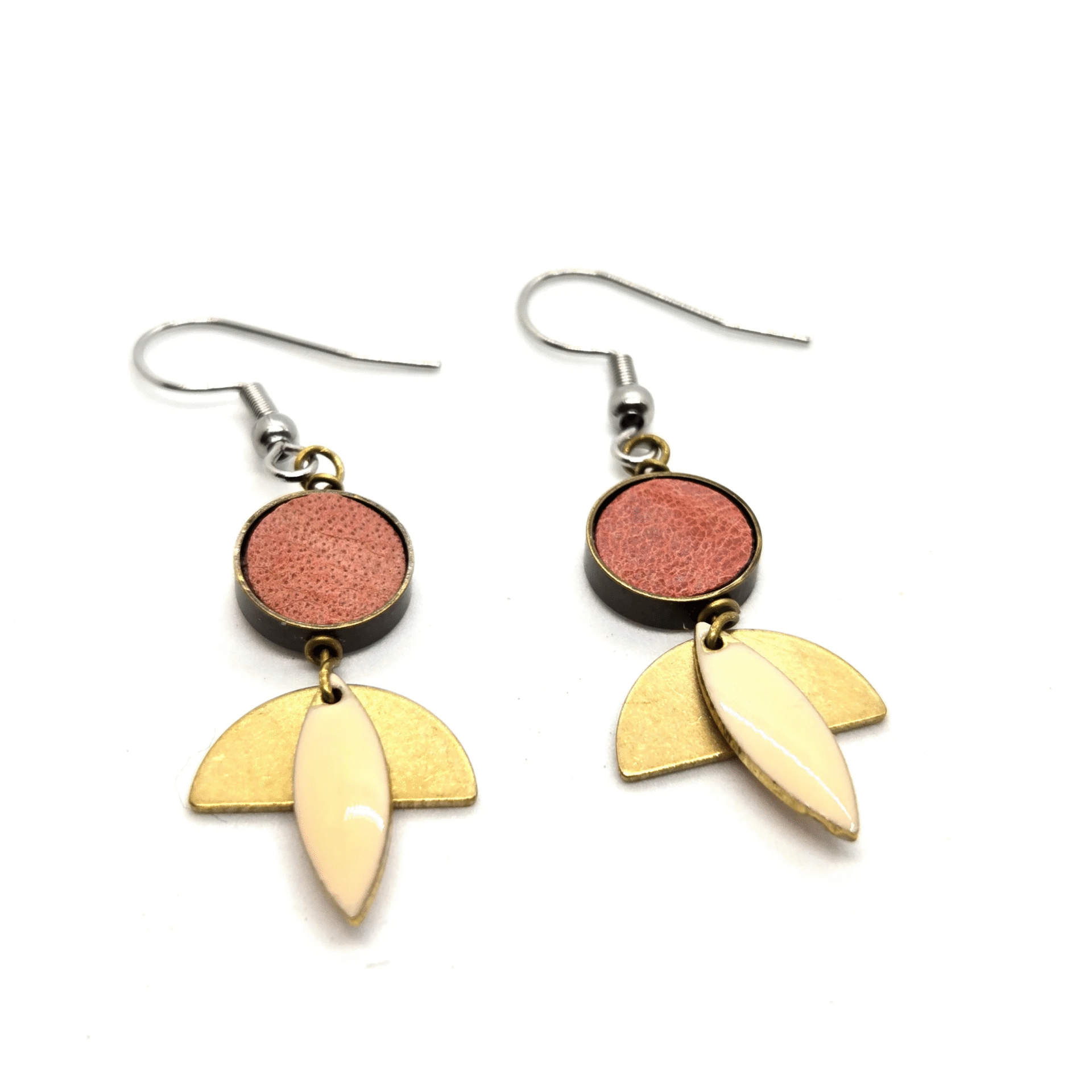 Superbes boucles d’oreilles Mini Coq. Faites à partir de cuir et liège recyclés, elles ont un style tout à fait unique qui vous donneront de la personnalité.