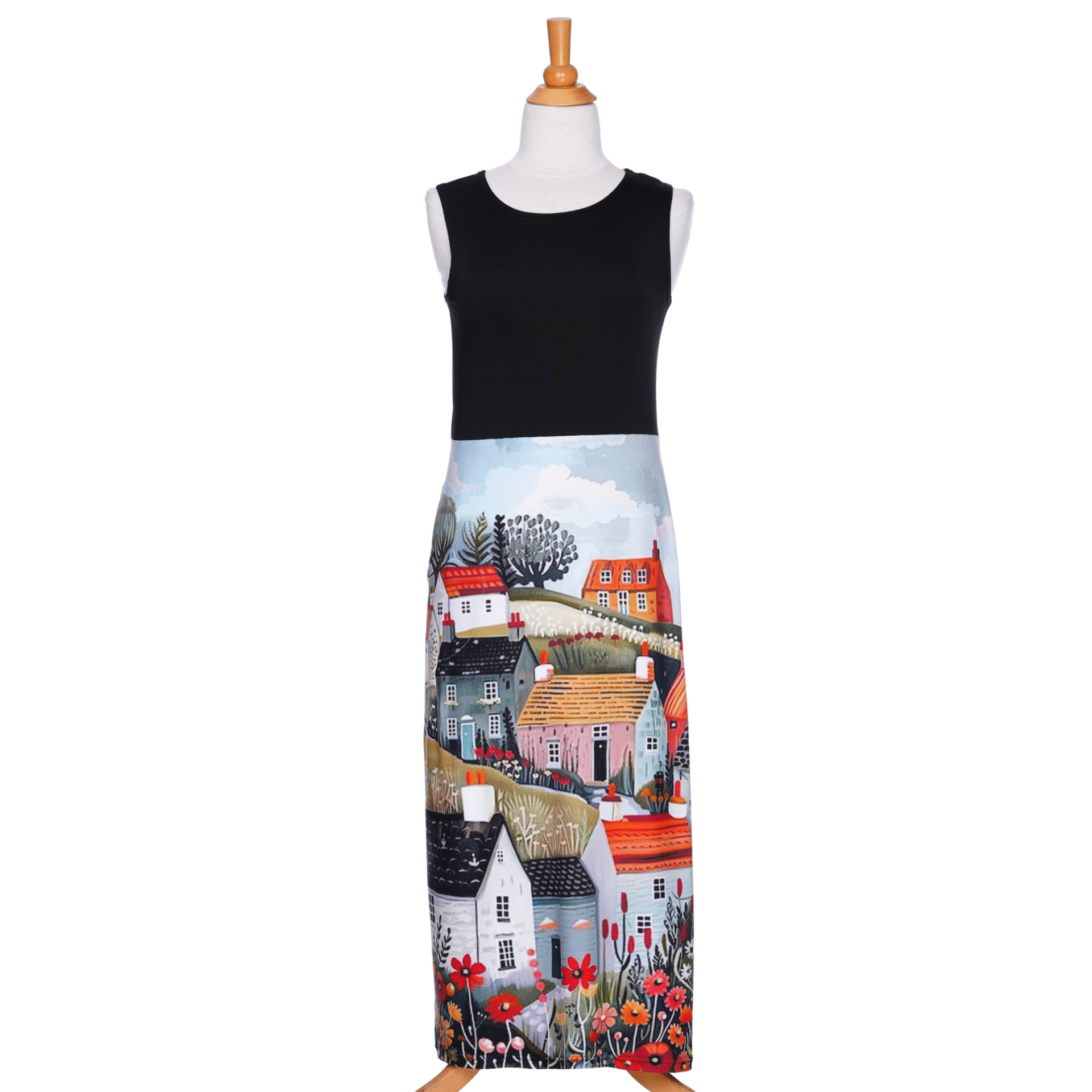 Comfortable, stretchy fabric. 95% polyester and 5% spandex. The fabric used for the bottom of the dress is printed just 15 minutes from our atelier-boutique.
