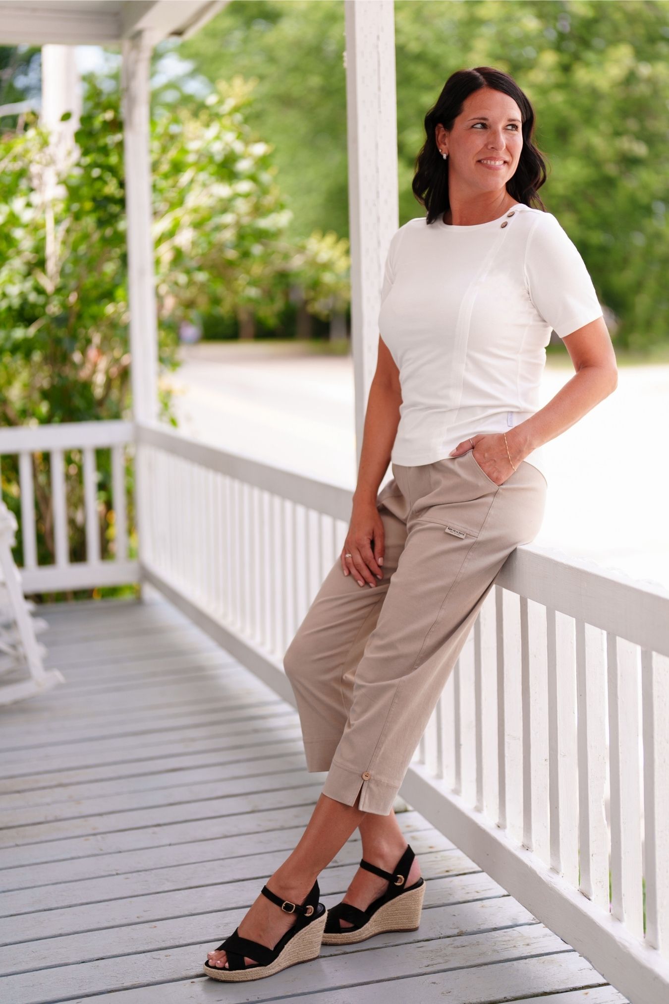 Joliment orné de boutons en noix de coco et de jeux de découpes originales à l’avant comme à l’arrière, ce haut se combine facilement avec vos morceaux préférés. Son bas arrondi, légèrement plus long à l’arrière, offre une coupe flatteuse et polyvalente. Un indispensable du quotidien, à porter sans modération.