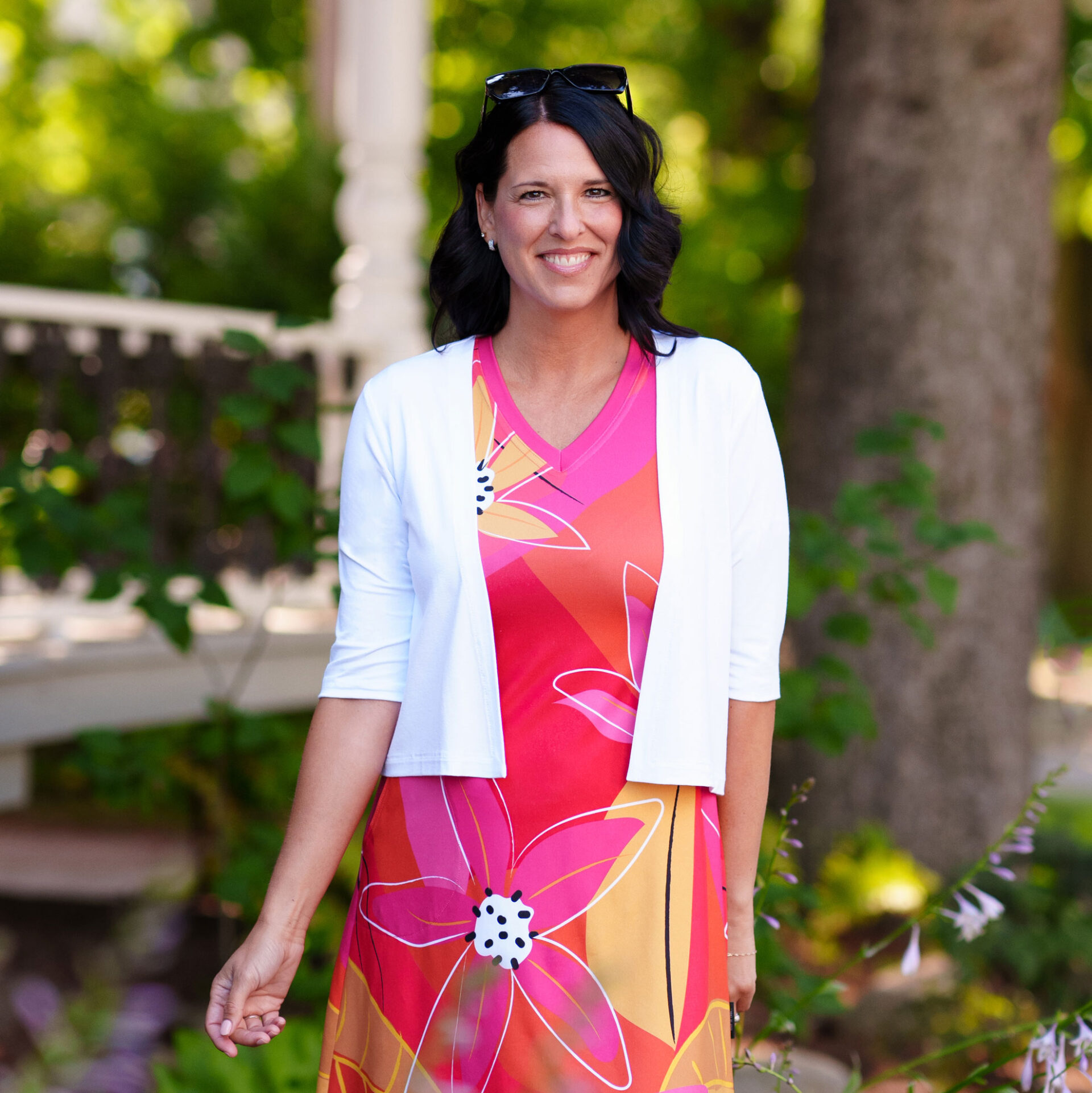 Composition du boléro Salvador blanc: 95% rayonne et 5% spandex. Dessiné et fabriqué au Québec par Rien ne se perd, tout se crée...