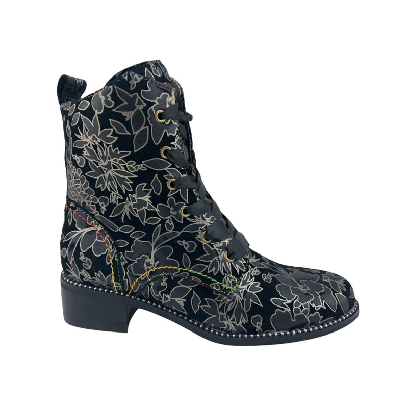 Quel style! Vous ajouterez assurément une touche de wow à votre look avec ce bottillon en cuir très original. Il est facile à enfiler grâce à sa fermeture éclair sur le côté intérieur.