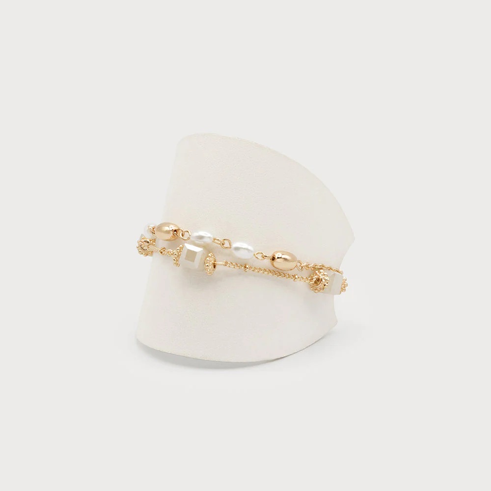 Splendide bracelet à 2 rangs avec perles d'imitation.