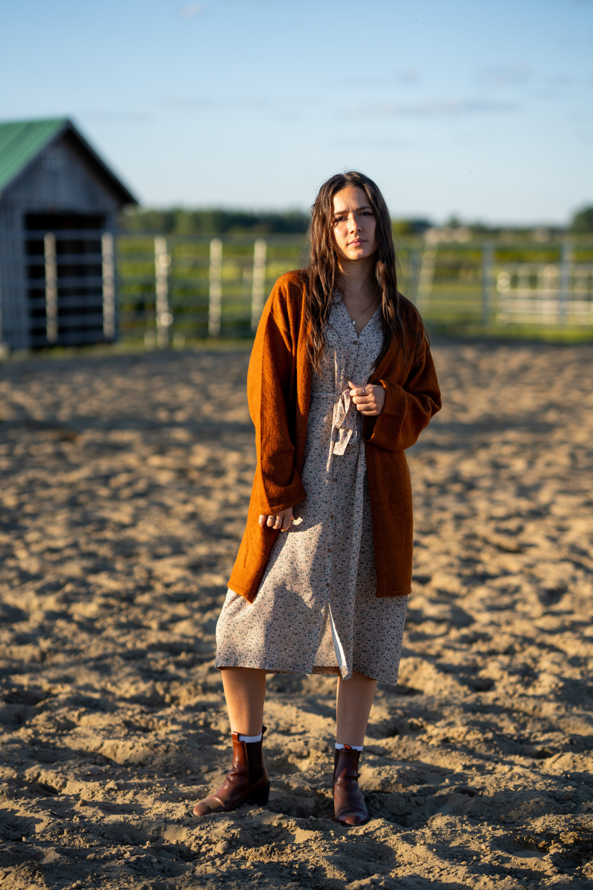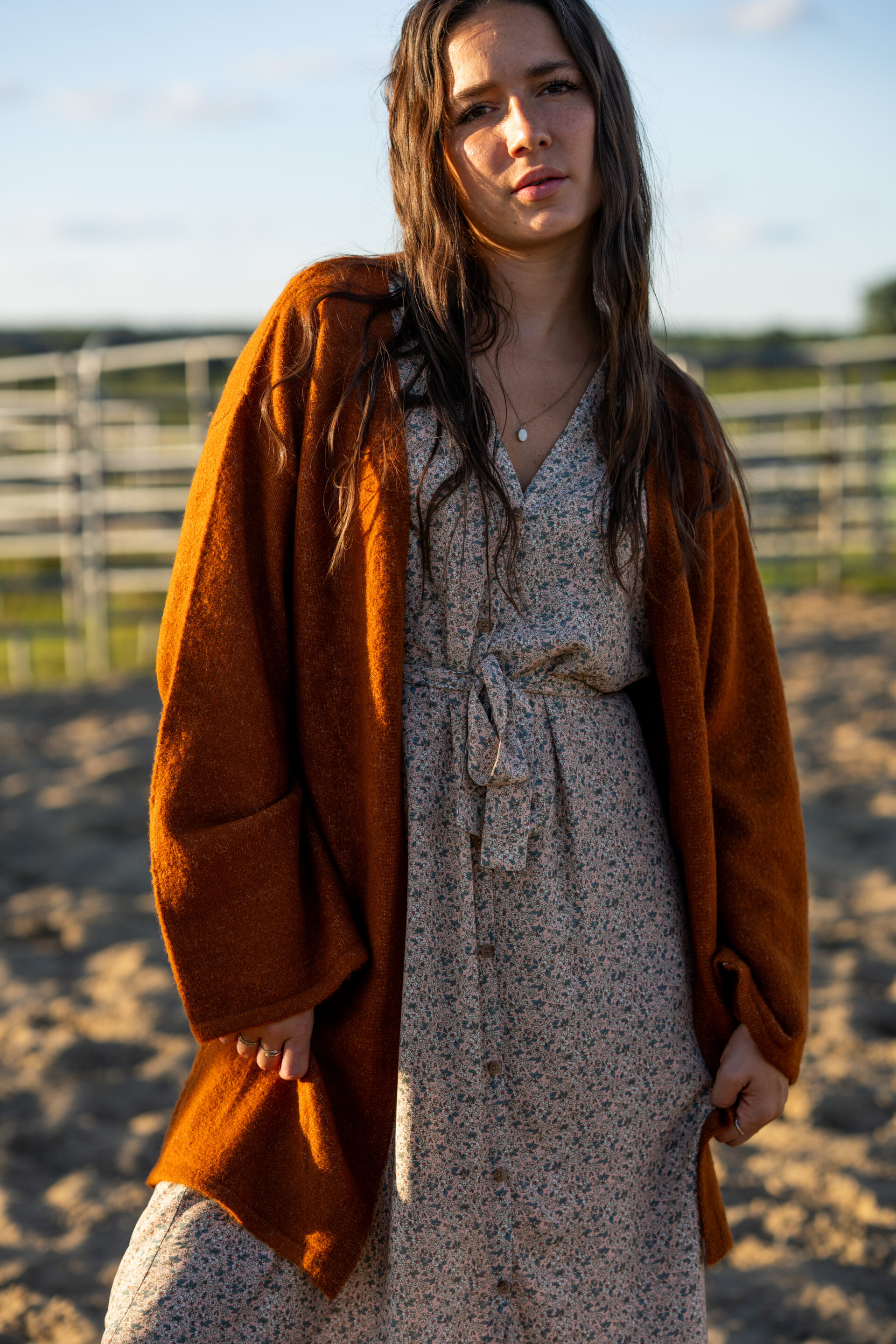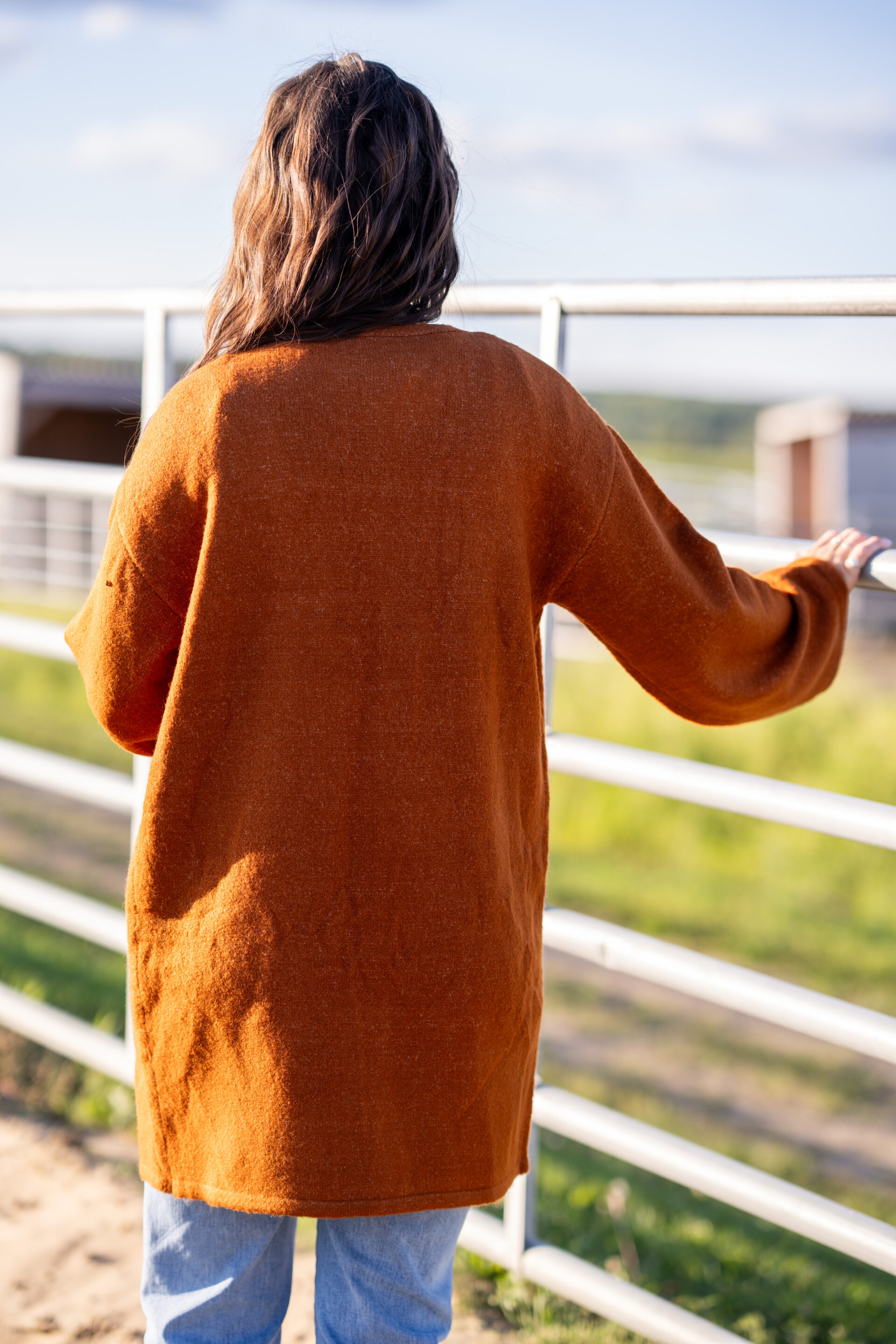 Ce cardigan en tricot séduit par sa coupe relax et ses manches plus larges, offrant une silhouette décontractée et actuelle. Sa longueur mi-cuisse en fait une pièce polyvalente, parfaite pour superposer à vos tenues du quotidien.