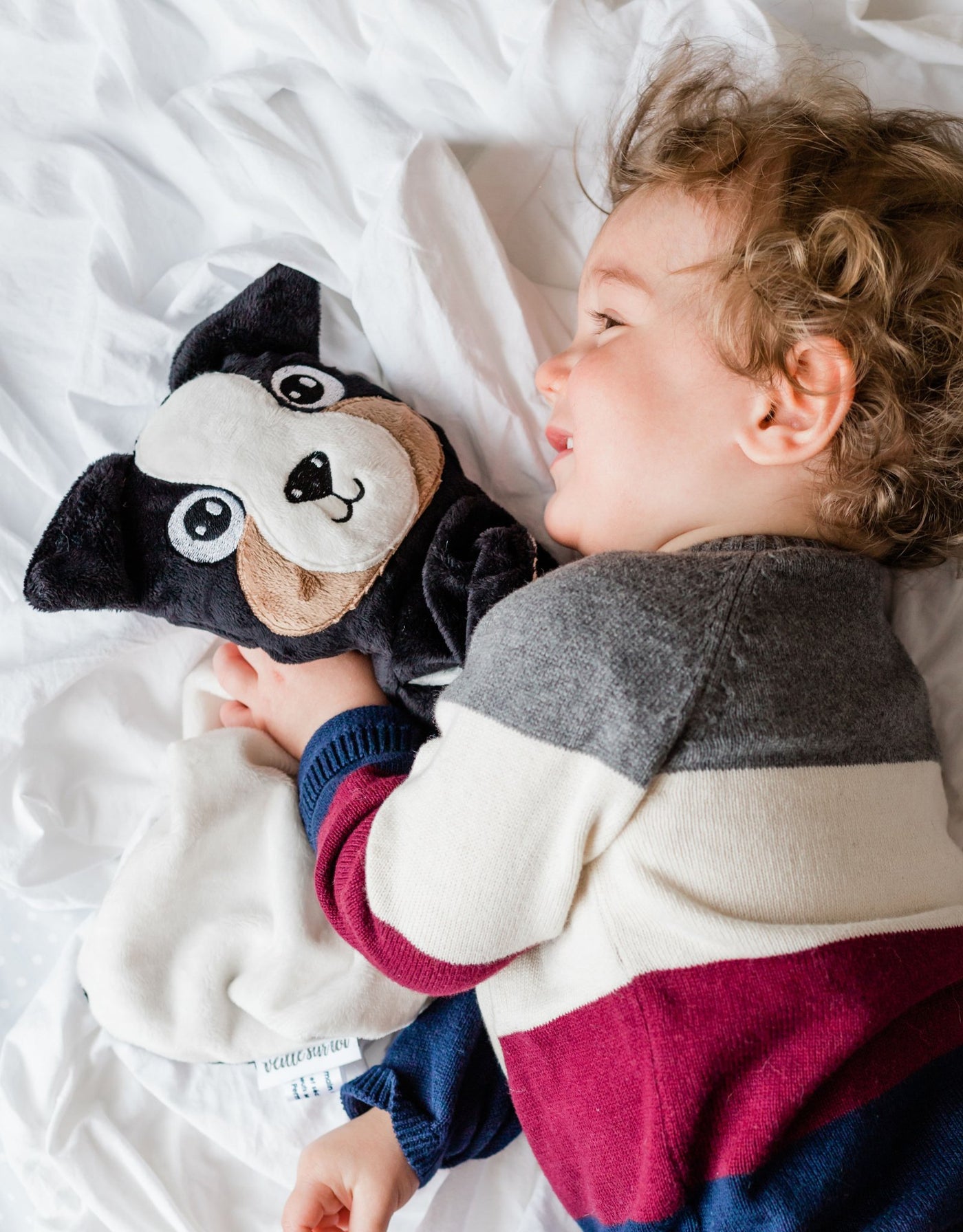 Voici l'adorable doudou chien Bernard de Veille sur toi! Elle est si douce, votre enfant voudra toujours l'avoir avec lui! Elle deviendra un objet sécurisant et rassurant, un compagnon idéal pour faire la sieste et pour la nuit! Chaque doudou est sécuritaire et convient aux bébés. Le visage est brodé, aucune bille n'est utilisée. Votre petit pourra le mettre à la bouche sans danger. De plus, la doudou est lavable et séchable à la machine! Conçue par une maman, pour les mamans. Elle mesure environ 30 cm de haut. Vous pouvez aussi ajouter la veilleuse chien Bernard à votre panier afin d'offrir un ensemble unique et fabriqué au Québec!