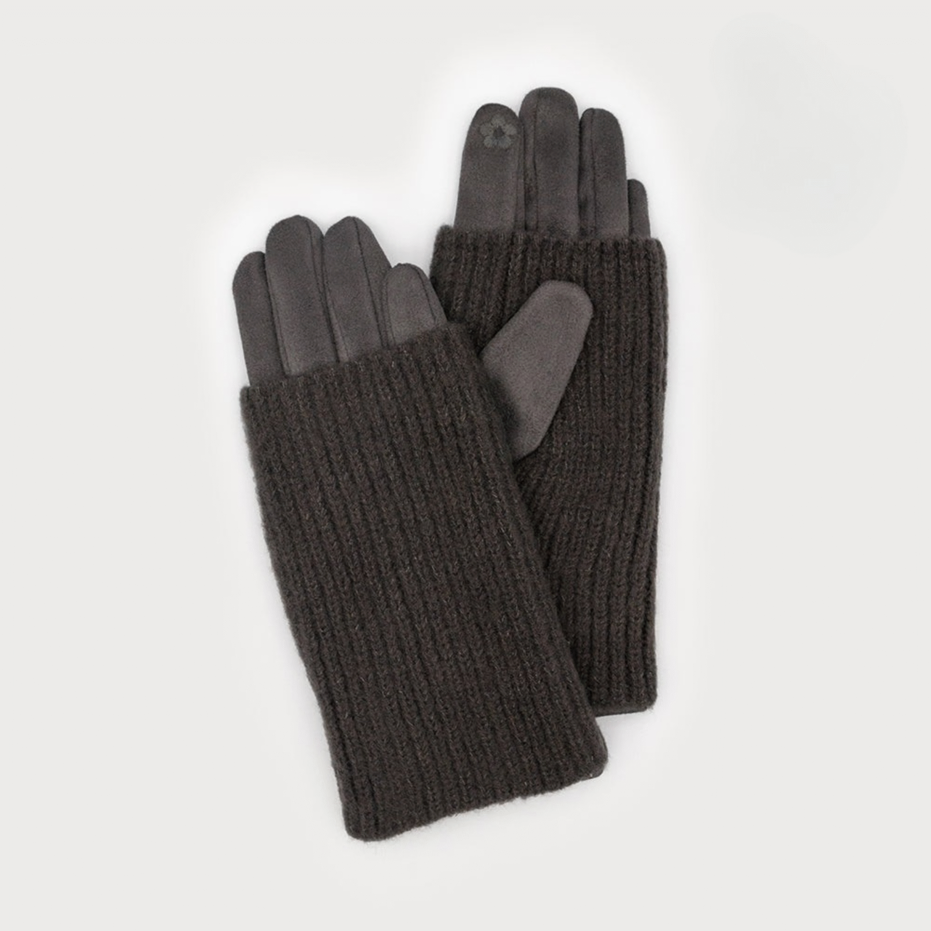 • Gants chauffe-poignets côtelés en faux suède Gris foncé