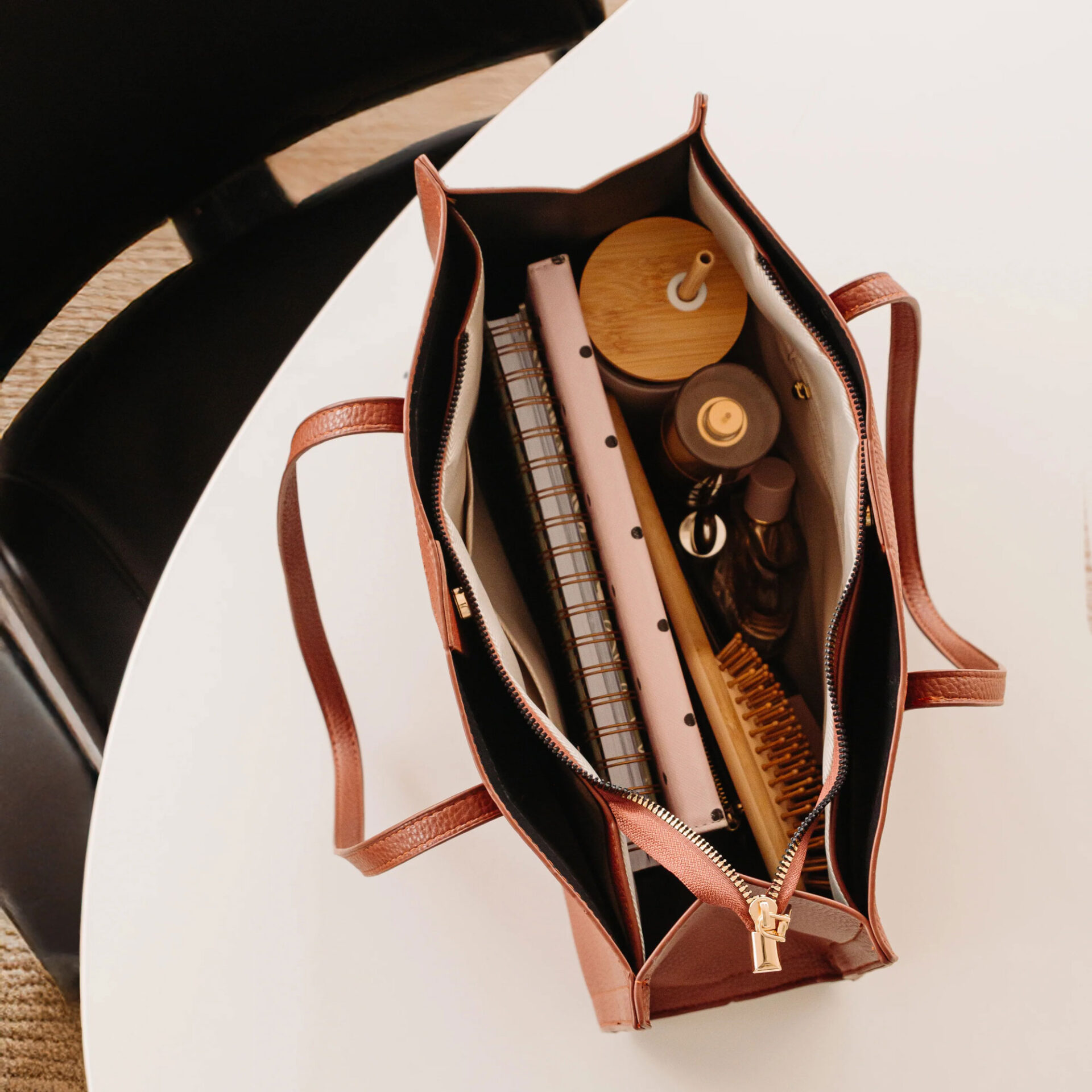 Grand sac à l'épaule avec zip Camel