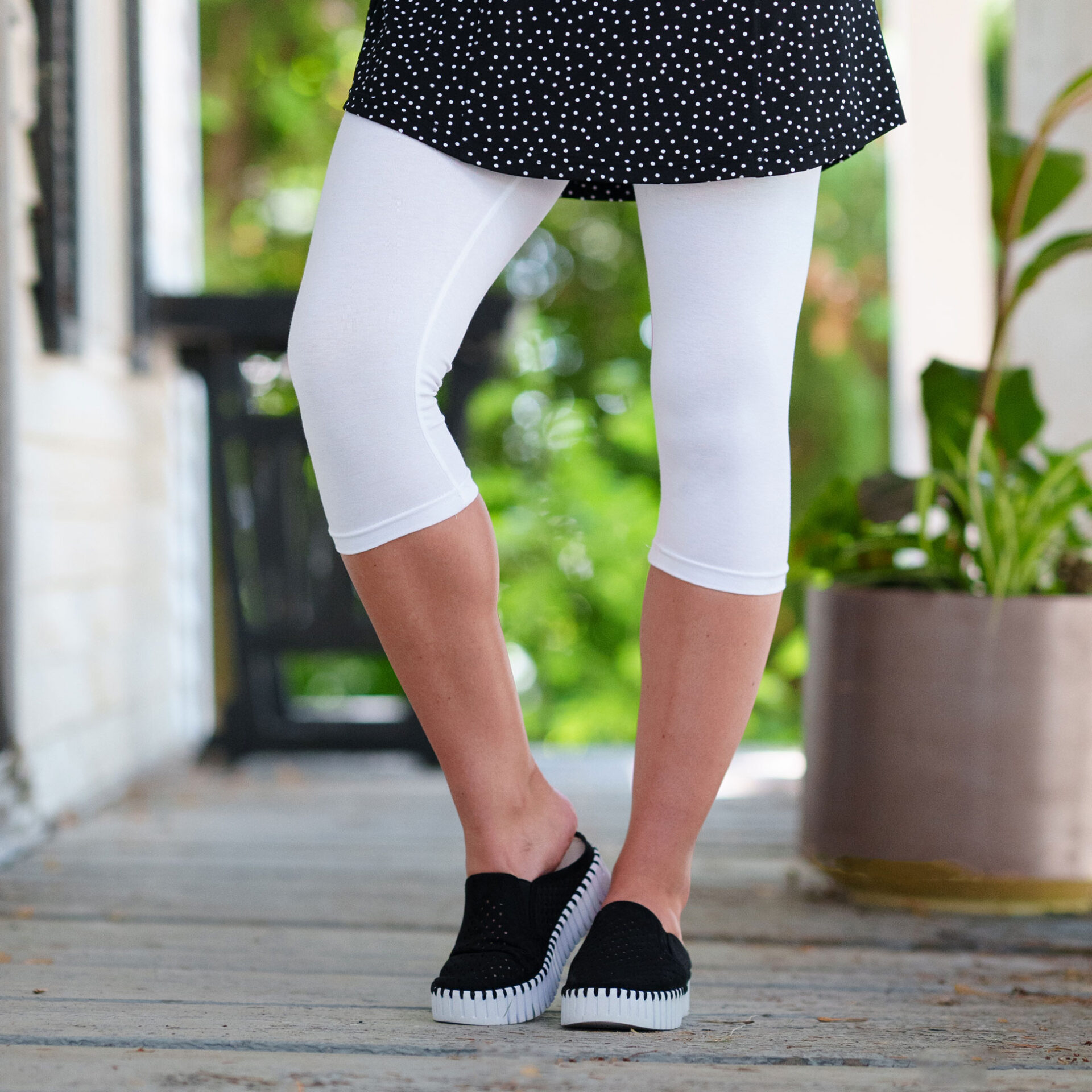 Il est fait dans un tissu d'une douceur et d'un confort infini. Il se marie à merveille à nos robes et tuniques! Fait intéressant: ce tissu blanc est un peu plus épais afin qu'on voit moins les petits défauts que l'on veut parfois cacher sur nos jambes.