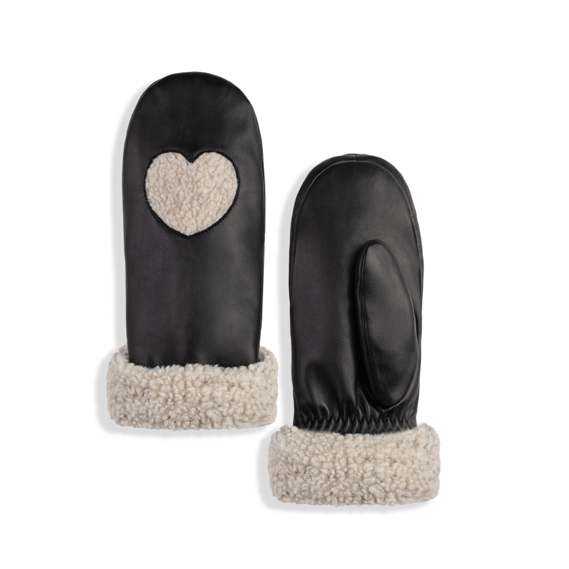 - Détail en fausse fourrure shearling en forme de cœur sur le dessus de la main, touche élégante et originale