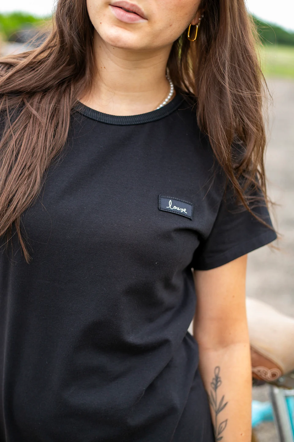 Avec sa coupe droite (ni trop ajustée, ni trop ample), sa longueur mi-cuisse et ses manches courtes, elle offre un parfait équilibre entre confort et style sans effort. Le col en rib noir apporte une finition nette, tandis que l’écusson Louve brodé au cœur ajoute une touche subtile et distinctive.